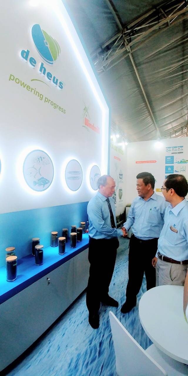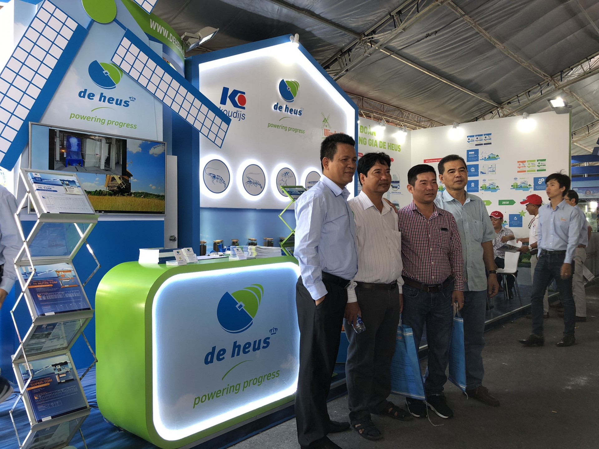 De Heus góp mặt lần này tại VietShrimp 2018 tại gian hàng 22-23-24 nhằm giới thiệu đến quý khách hàng, quý đại lý, quý đối tác những sản phẩm thức ăn tôm chất lượng cao được sản xuất trên dây chuyền sản xuất hiện đại của công ty, với mong muốn đến gần hơn với người nuôi tôm tại Bạc Liêu nói riêng và trong khu vực ĐBSCL nói chung. Đến với gian hàng của De Heus, người nông dân có cơ hội gặp gỡ các chuyên gia, tiếp cận với những phương pháp nuôi trồng bền vững, tiên tiến bằng thức ăn De Heus cũng như cùng tham gia các trò chơi đố vui trúng thưởng những món quà lưu niệm. Ngoài ra, gian hàng De Heus cũng vinh dự đón tiếp Thứ trưởng Bộ NN – PTNT Vũ Văn Tám và TS Trần Đình Luân - Phó Tổng cục trưởng Tổng cục Thủy sản ghé thăm.