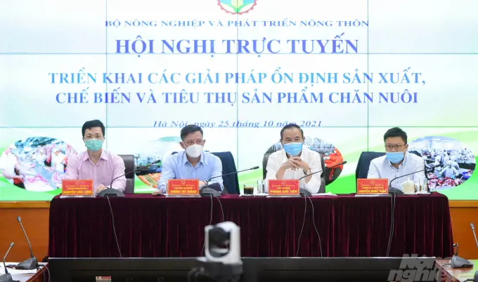Ngày 25/10 Bộ Nông nghiệp và Phát triển nông thôn (NN&PTNT) tổ chức Hội nghị trực tuyến triển khai các giải pháp ổn định sản xuất, chế biến và tiêu thụ sản phẩm chăn nuôi do Thứ Trưởng Bộ NN&PTNT Phùng Đức Tiến chủ trì.