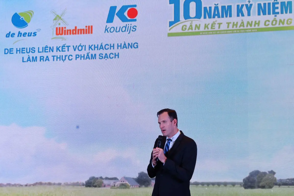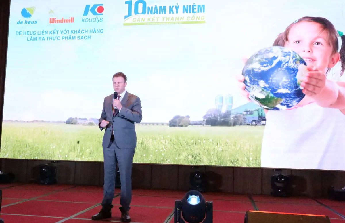 Tại Hội nghị, nhằm vinh danh sự gắn kết 10 năm giữa De Heus và khách hàng trong khu vực Miền Trung. Trong đó, có nhiều giải thưởng có giá trị cao, như; xe hơi Audi Q7 2.0L 8AT, Lexus RC 200t 2.0L 8AT, Marcedes Bens CLA 45AMG, BMW X3. Drive 20i 2.0L 8AT, Toyota Fortuner V 4x4, Camry E 2.0L và nhiều loại xe ô tô, xe mô tô khác. Cùng với đó, ông Gabor Fluit có một báo cáo tổng quát ngắn ngọn về 10 năm hoạt động của De Heus tại Việt Nam. Xuất phát từ năm 2009 với sản lượng 42.000 tấn/năm, đến năm nay (2019) có sản lượng vượt mức 1.300.000 tấn/năm, qua 10 năm sản lượng tăng trưởng 3.095%, bình quân một năm tăng trưởng 310%. Đặc biệt năm 2019, gặp khó khăn dịch bệnh dịch tả heo Châu Phi, De Heus vẫn đảm bảo mức tăng trưởng theo kế hoạch 10% so với năm 2018. Có được con số tăng trưởng ấn tượng đó chính là nhờ vào sự tin dùng sản phẩm De Heus của quý đại lý, quý trang trai trong hơn 10 năm qua. Song song với sự phát triển mạnh mẽ ở Việt Nam, De Heus đã và đang đầu tư phát triển ra các nước trong khu vực, như Cambodia, Myanmar, Indonesia, Philipine… Mặt khác, với phương châm sản xuất kinh doanh “De Heus liên kết với khách hàng làm ra thực phẩm sạch”, do vậy De Heus luôn sát cánh cùng người chăn nuôi trong những lúc khó khăn cũng như lúc thuận lợi… Cuối cùng, ông Gabor Fluit gởi lời biết ơn sâu sắc nhất đến quý khách hàng đã, đang đồng hàng cùng De Heus trong những năm qua, tiếp tục gắn kết cho những năm sau nữa…