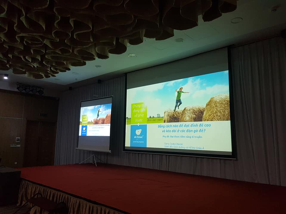 Ngày 06/09/2019, nằm trong chương trình của Triển lãm DANANG LIVESTOCK 2019, tại Khách sạn Royal Lotus Hotel, 120A Nguyễn Văn Thoại, TP. Đà Nẵng, Công ty TNHH De Heus đã tổ chức 1 cuộc hội thảo với chuyên đề: “Làm thế nào đạt sản lượng cao và bền bỉ trong chăn nuôi gà đẻ?” với phần chia sẻ của Ông Gerry Oude Elferink, Giám đốc Dinh dưỡng Gia cầm De Heus châu Á với sự tham gia của hơn 100 Khách Hàng chăn nuôi gia cầm của De Heus khu vực Miền Trung.