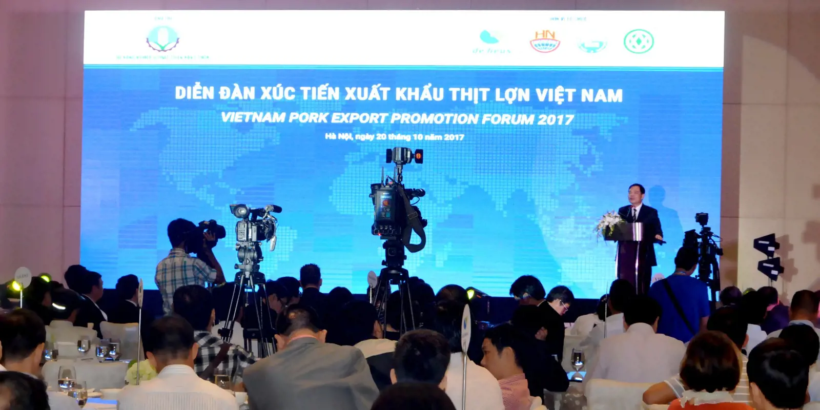 Ngày 20.10.2017, tại Khách sạn JW Marriott (Hà Nội), Bộ NN-PTNT đã tổ chức “Diễn đàn xúc tiến xuất khẩu thịt lợn Việt Nam” dưới sự chủ trì của Phó Thủ tướng Trịnh Đình Dũng và Bộ trưởng Bộ NN-PTNT Nguyễn Xuân Cường. Diễn đàn là cơ hội quý giá để các doanh nghiệp trong chuỗi giá trị sản xuất chăn nuôi, các đơn vị nhập khẩu nước ngoài, các bộ ngành liên quan có cơ hội cùng nhau đánh giá cơ hội, thảo luận các biện pháp xúc tiến phát triển sản xuất, mở rộng tiềm năng xuất khẩu thịt lợn.