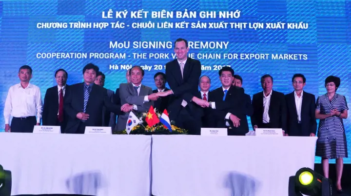 Trong dịp này, trước sự chứng kiến của lãnh đạo Chính phủ và Bộ NN-PTNT, Đại sứ quán Hà Lan, Phó Chủ tịch Uỷ ban nhân dân tỉnh Dak Lak, Phó Bí thư tỉnh Bình Phước, Phó Chủ tịch Uỷ ban nhân dân tỉnh Long An, Câu lạc bộ Nông nghiệp Công nghệ cao, Tập đoàn De Heus, Công ty CP và Đầu tư Thương mại Biển Đông cùng với Công ty máy móc Daewon đã cùng ký kết Thoả thuận thực hiện liên kết chuỗi sản xuất thịt lợn sạch để xuất khẩu. Sự tham gia ký kết này mở ra một hướng đi chung trong chiến lược phát triển của các bên với mục đích mang lại cho cộng đồng chuỗi giá trị cung ứng thịt heo sạch, an toàn hướng đến xuất khẩu.
