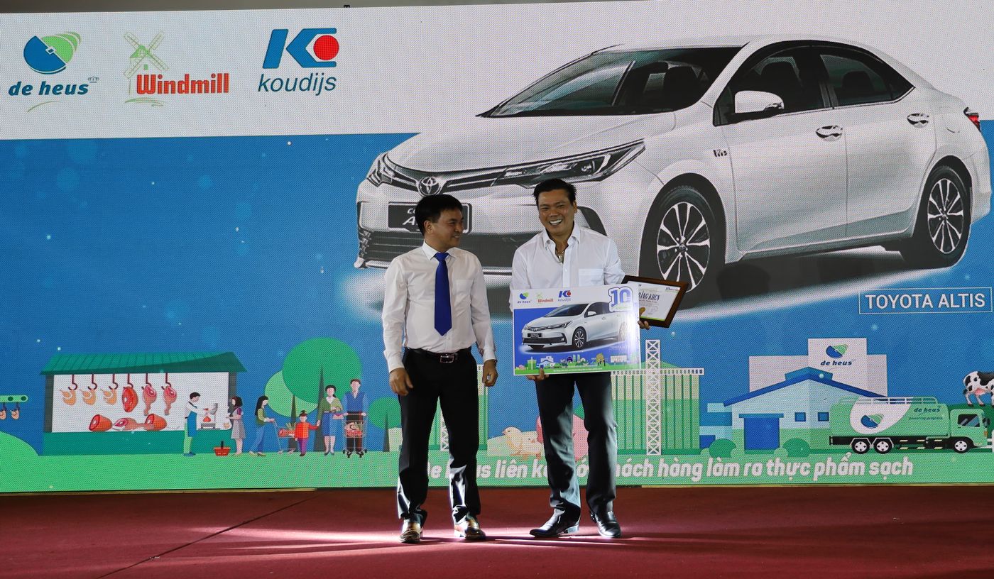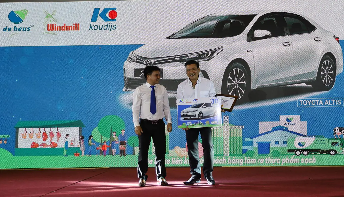 Tại Hội nghị, để vinh danh sự gắn kết 10 năm giữa De Heus và khách hàng trong khu vực Miền Đông Nam Bộ. Trong đó, có nhiều giải thưởng có giá trị cao như: xe hơi Audi Q7 2.0L 8AT, Lexus RC 200t 2.0L 8AT, Mercedes Bens CLA 45AMG, BMW X3, Drive 20i 2.0L 8AT, Toyota Fortuner V 4x4, Camry E 2.0L và nhiều loại xe ô tô, xe mô tô khác.