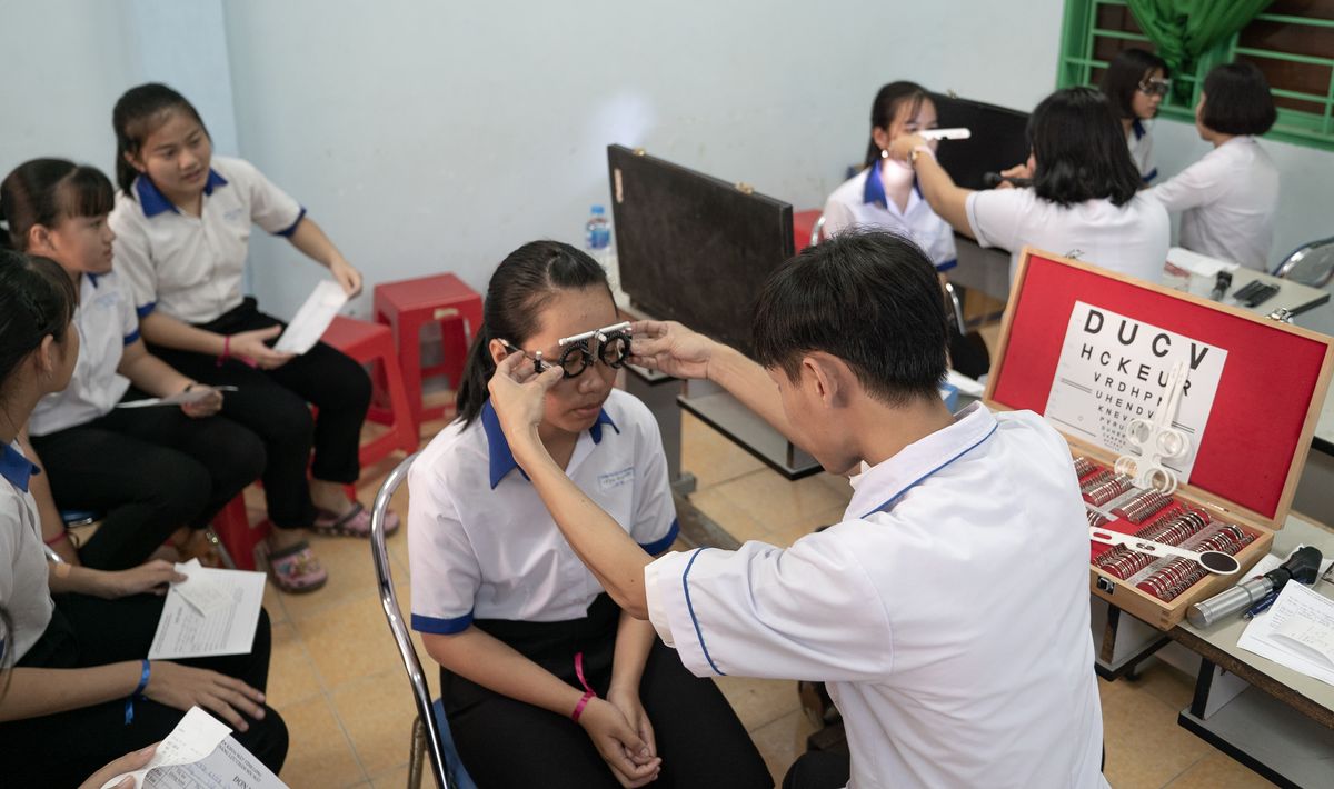 Mới đây, tại trường THCS Hòa Bình (tọa lạc tại xã Hòa Bình, huyện Trà Ôn, tỉnh Vĩnh Long), với sự tham dự của bà Rolinda De Heus, phu nhân của chủ tịch tập đoàn Royal De Heus, là bác sĩ chuyên khoa mắt, người đã khởi xướng dự án “Nâng cao năng lực chăm sóc mắt từ 2016 đến 2026 tại tỉnh Vĩnh Long”. Cùng sự hỗ trợ về chuyên môn của các y, bác sĩ chuyên khoa mắt của Bệnh viện Mắt tỉnh Vĩnh Long, Trung tâm Y tế huyện Trà Ôn và hơn 250 em học sinh trường THCS Hòa Bình tham gia khám chữa bệnh về mắt.