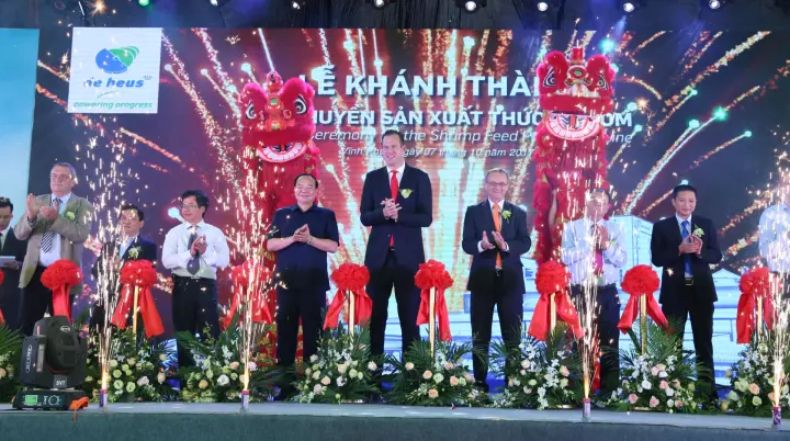 Nhằm đáp ứng nhu cầu phát triển ngày một tăng cao của thị trường nuôi tôm khu vực phía Bắc, Tháng 02/2017 công ty TNHH De Heus đã quyết định đầu tư dây chuyền sản xuất thức ăn tôm tại nhà máy Vĩnh Phúc. Đây cũng chính là nhà máy thứ hai De Heus đầu tư dây chuyền sản xuất thức ăn thủy sản tại Việt Nam. Sau 6 tháng thi công, De Heus chính thức khánh thành dây chuyền sản xuất thức ăn tôm. Buổi lễ diễn ra tại nhà máy Vĩnh Phúc, có sự tham dự của hơn 200 khách mời, trong đó có đại diện đến từ Tổng Cục Thuỷ Sản Việt Nam, Cục chăn nuôi, Đại Sứ Quán Hà Lan, Tỉnh Vĩnh Phúc, đối tác, khách hàng, cơ quan báo chí và nhân viên công ty De Heus. Tại buổi khánh thành, các khách mời cũng được tham quan dây chuyền để có thể chứng kiến cách vận hành sản xuất của De Heus trong việc tạo ra những sản phẩm chất lượng cho người nuôi tôm khu vực Bắc Trung Bộ, Bắc Bộ và xuất khẩu.