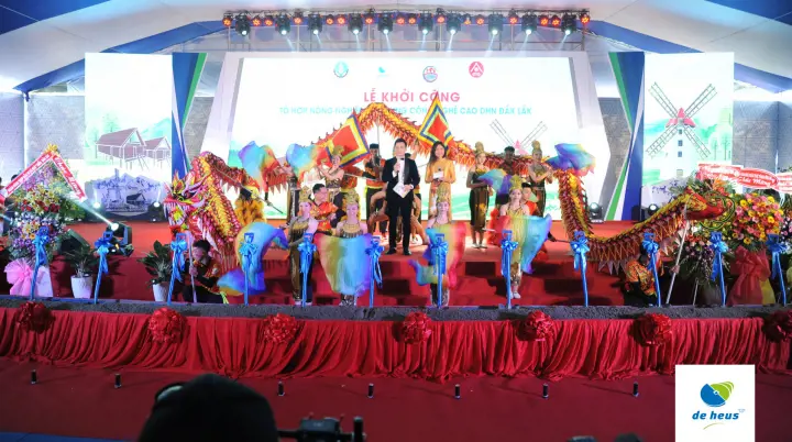 Tham dự buổi lễ trên bao gồm đại diện các ĐSQ các nước Hà Lan, Đan Mạch, Lào; đại diện Bộ NN-PTNT; đại diện tỉnh Đắk Lắk và các tỉnh lân cận; ông Gabor Fluit - Tổng Giám đốc De Heus Châu Á, Tổng Giám đốc De Heus Việt Nam và Campuchia – ông Johan Van Den Ban; về phía Tập đoàn Hùng Nhơn có ông Vũ Mạnh Hùng – Chủ tịch HĐQT, TGĐ Tập đoàn Hùng Nhơn và hơn 850 khách hàng là các đại lý, các trang trại chăn nuôi quy mô lớn tại Miền Trung và Đông Nam Bộ.
