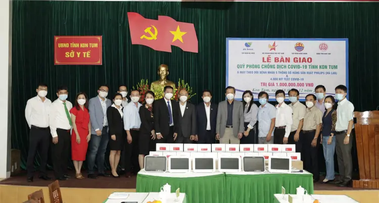 Tại buổi lễ bàn giao, Tập đoàn De Heus và Tập đoàn Hùng Nhơn cùng các đối tác đã trao tặng 6máy Monitor hiệu Philips của Hà Lan để theo dõi bệnh nhân với 5 thông số và 4.000 Kit test cho Quỹ phòng chống Covid-19 của tỉnh Kon Tum, với tổng số tiền là 1 tỷ VNĐ đồng.