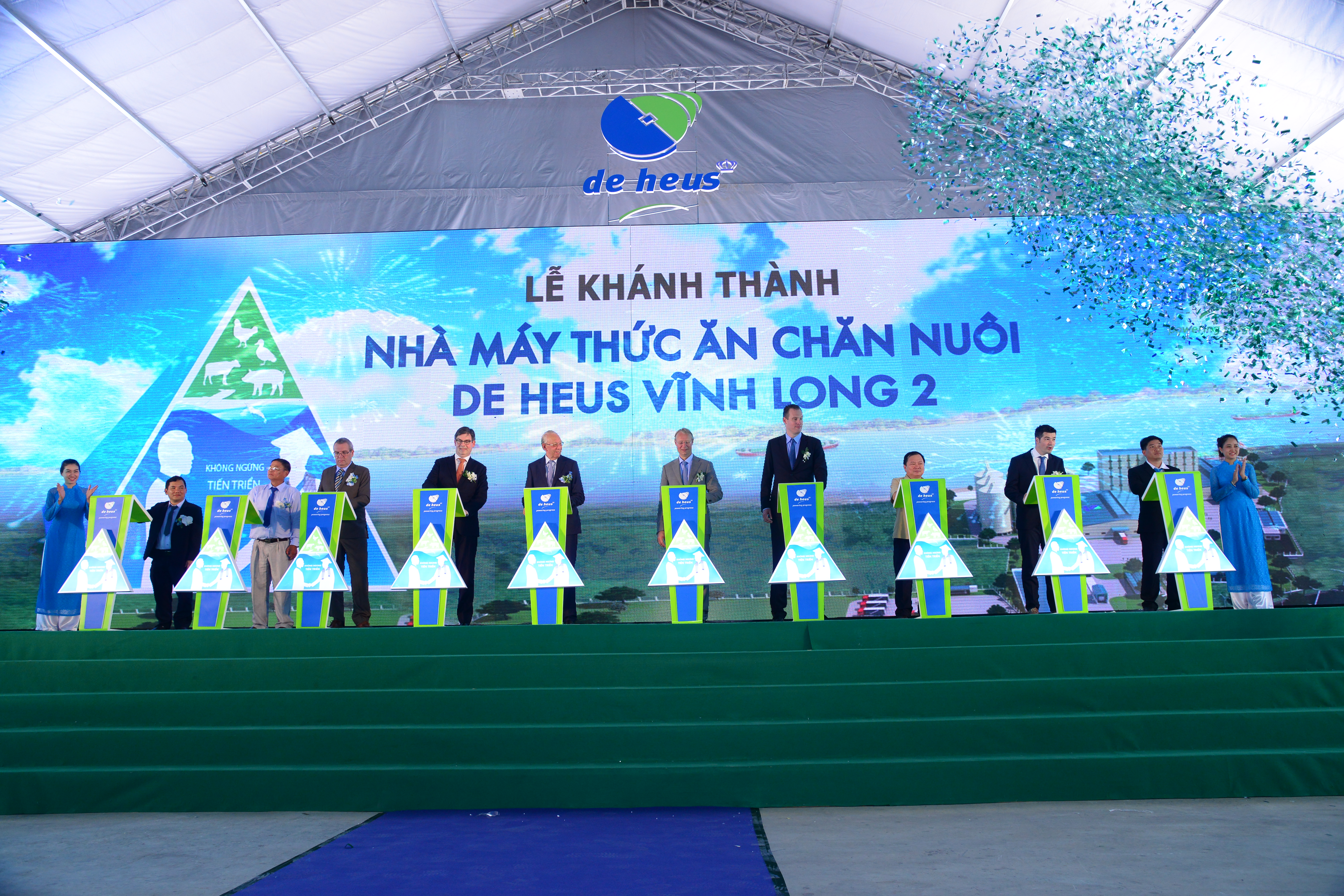 De Heus vừa khánh thành nhà máy thức ăn chăn nuôi Vĩnh Long 2 t ạ i huy ệ n Mang Thít, t ỉ nh Vĩnh Long. Đây là nhà máy thứ 7 của De Heus tại Việt Nam. Buổi lễ có sự tham dự của ông Nguyễn Văn Quang, Chủ tịch UBND tỉnh Vĩnh Long, ông Simon van der Burg, Ngài Tổng Lãnh Sự Lãnh sự quán Hà Lan tại Tp.HCM, ông Co de Heus, Giám Đốc Điều Hành Tập Đoàn De Heus cùng hơn 2,000 quan khách là đại lý, nhà chăn nuôi và đối tác của De Heus trên cả nước, Campuchia va Myanmar.